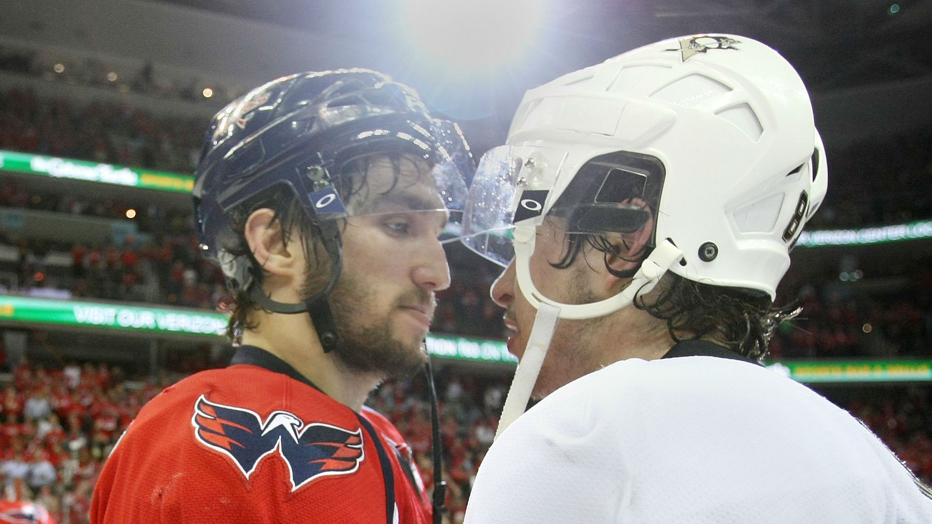 What to watch for: Crosby and Ovechkin meet again ... from assets1.sportsnet.ca Penguins fans, and hockey fans, should take some time to appreciate alex ovechkin and sidney crosby. It's such a blessing we get to see two of the greatest. Crosby drops ovechkin with a left hook but before the linesmen can step in, ovechkin rises to his skates and crushes crosby with an uppercut.